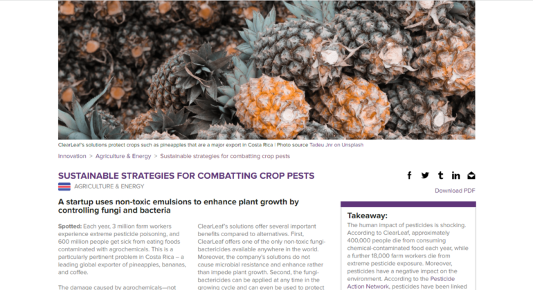 Startup Spotlight: ClearLeaf is tackling worker & environmental welfare through crop inputs Alternative ‘biologic’ crop inputs are a new class of products that offer farmers ways to control disease, pests, and drought without relying on agrochemicals, which remain the most widely used solution globally.
